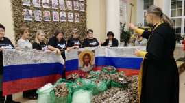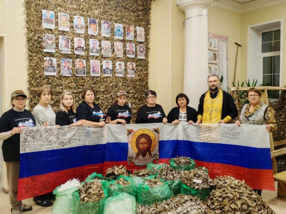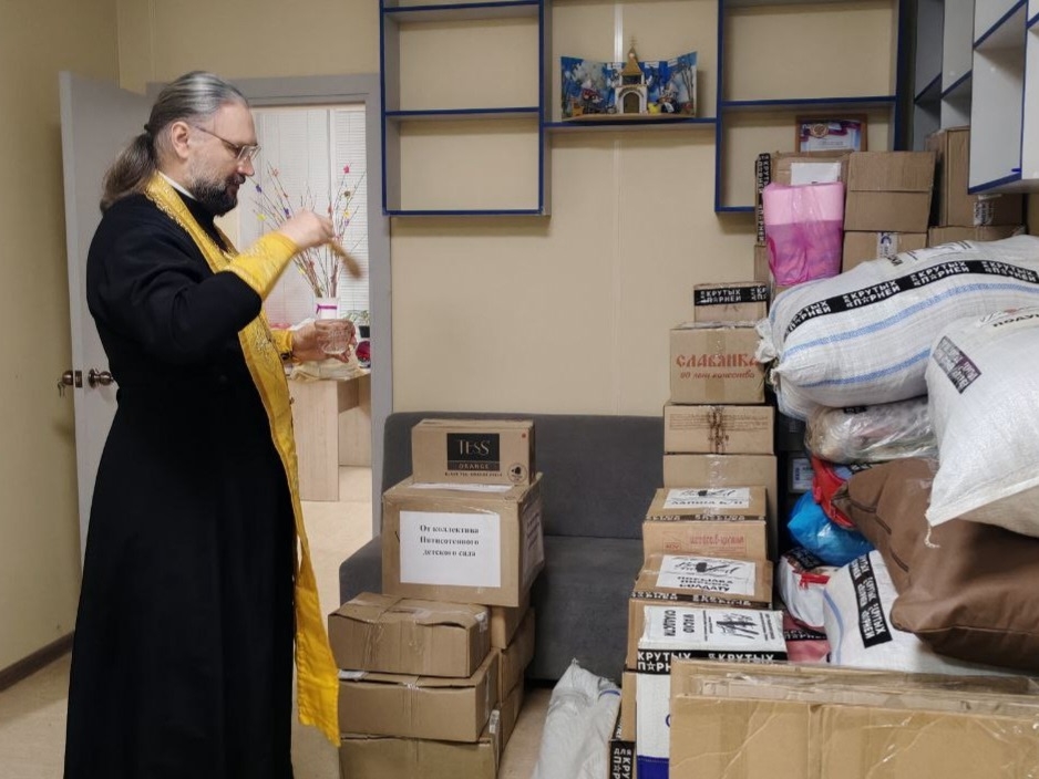 11 декабря 2025 года в Октябрьском Доме культуры руководитель Епархиального отдела по взаимодействию с Вооруженными силами и правоохранительными органами иеромонах Иона (Черкасов) освятил гуманитарную помощь для воинов находящихся в зоне специальной военной операции, собранную волонтерами Гуманитарного центра Свято-Татианинского храма и патриотическим отрядом "ZaРодину".