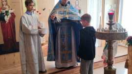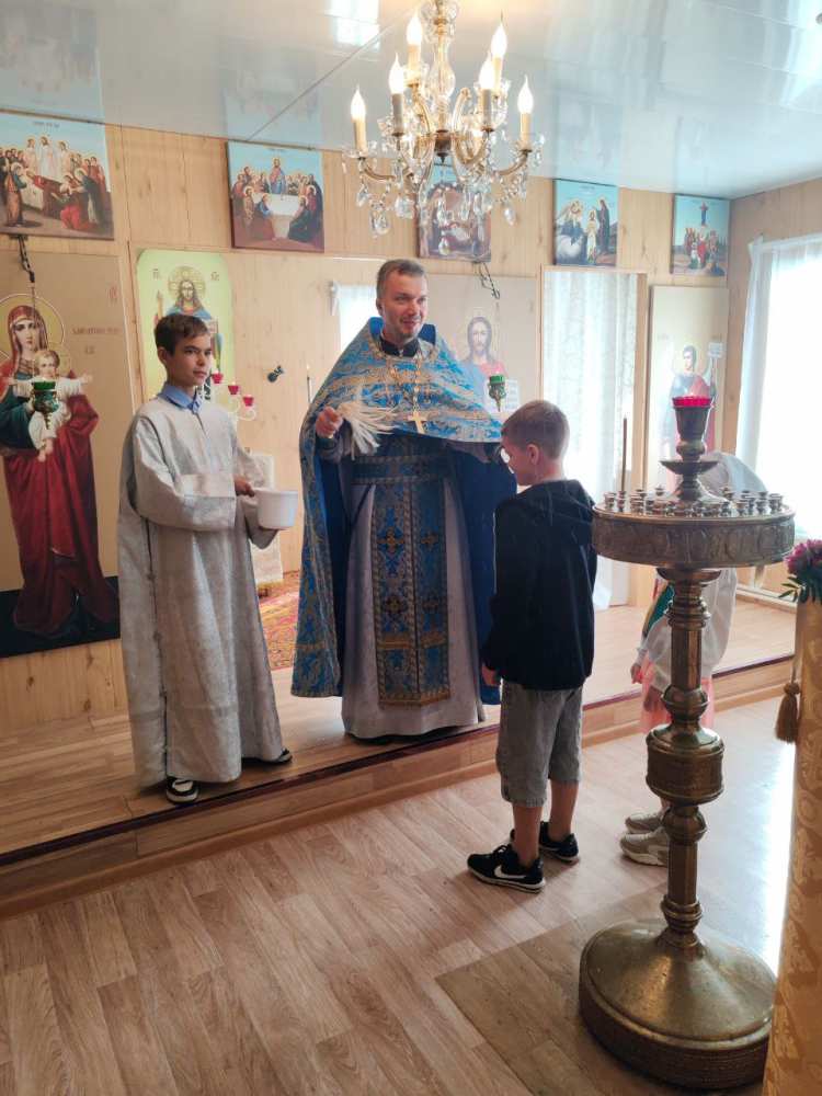 После прочтения Евангелия, отец Димитрий обратился к школьникам с пастырским словом. По причащении Святых Таин Христовых, учащиеся получили благословение на новый учебный год.