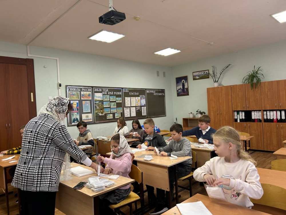 Для подготовки очередного гуманитарного конвоя воинам СВО 29 ноября 2025 года учащиеся Воскресной школы "Источник" Свято-Татианинского храма, под руководством педагогов Плечовой О.И., Петровой И.Ф. и сотрудника Приходской социальной службы "От сердца к сердцу" Макаровой Е.В. приняли активное участие в изготовлении комплектов сухого душа.
