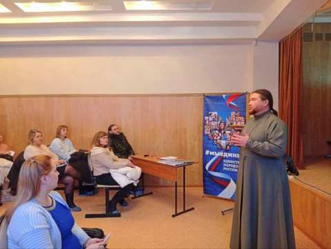 11 февраля 2026 года настоятель храма Всецарицы г.Димитровграда священник Петр Гурьянов принял участие в родительском собрании в УлГТУ, лицей № 16 имени Юрия Юрьевича Медведкова по выбору модуля комплексного курса "Основы религиозных культур и светской этики".