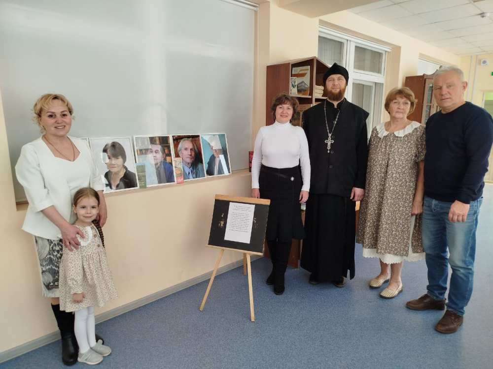 Проникновенное слова сказал протоирей Андрей Макаров настоятель храма святого Георгия Победоносца о вере, добре, чести, совести никого не оставило равнодушными. Директор центра Кондикова Татьяна Владимировна поблагодарила участников и строителей выставки. Кашкирова Р. И. вручила книгу Е. С. Ларина "Девушка в шинели". Ведь в этом году Ларину исполнилось бы 100 лет. И отметила плодотворное сотрудничество с центром.