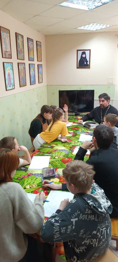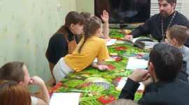 По окончании Божественной Литургии в трапезной прошли занятия Библейской группы и воскресной школы для детей в рамках празднования Дня православной книги. Со взрослыми разобрали 21 главу Евангелия от Матфея, а с детьми - события книги Исход.