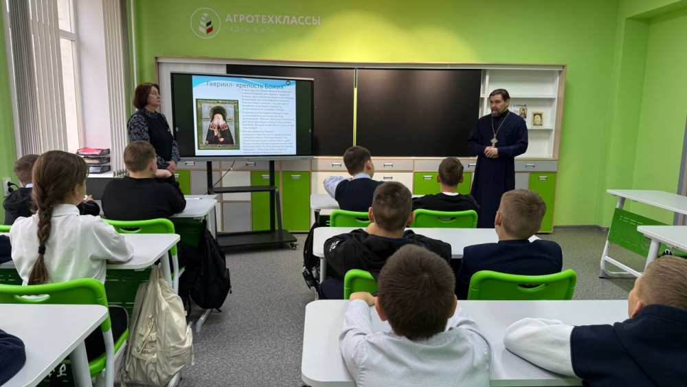 20 октября 2025 года в МБОУ «Зерносовхозская СШ имени М.Н. Костина» в рамках XXXIV Международных Рождественских образовательных чтений: «Просвещение и нравственность: формирование личности и вызовы времени» состоялась встреча обучающихся с настоятелем храма Архистратига Михаила протоиереем Андреем Спиридоновым.