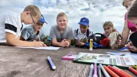Далее организаторы, родители и дети направились на местный стадион. Там были проведены разминка, эстафеты, подвижные игры, футбол. Для желающих проведен пленэр. Затем после обеда в трапезной храма на площадке дети с удовольствием покатались на лошадке и пони, поиграли в волейбол. Важным событием стала совместная работа детей. Им нужно было проиллюстрировать четверостишие, посвященное святому Гавриилу Мелекесскому.