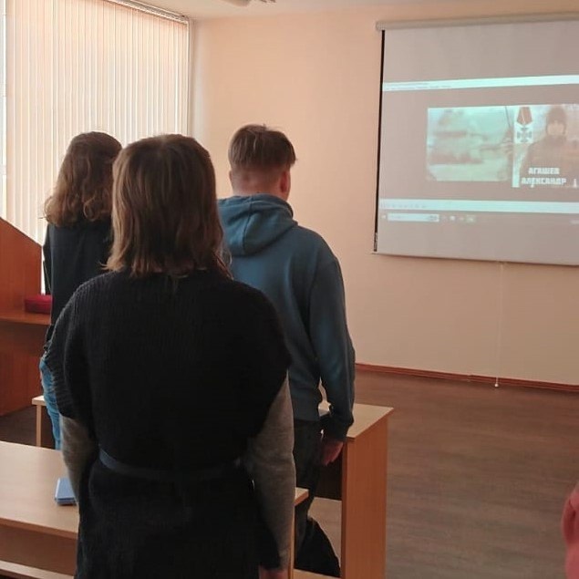 К Дню защитника Отечества на факультете ветеринарной медицины и биотехнологии Ульяновского ГАУ имени П. А. Столыпина 25 февраля 2025 года после окончания занятий для студентов 2 курса ВО и 4 курса СПО специальности «Ветеринария» состоялся просмотр видео фильмов, посвящённых участникам специальной военной операции «О Героях нашего времени». Организаторами стали члены духовно-патриотического клуба «Радонеж», преподаватели УлГАУ - Светлана Дежаткина и Светлана Иванова. После окончания просмотра почтили память Героев минутой молчания, затем педагоги с ребятами провели обсуждение документальных фильмов, говорили о твердости характера и высоких моральных качества молодых людей, принявших твёрдое решение – встать на защиту Отечества. Итогом просмотра стал духовно-патриотический настрой студентов, гордость за наших Героев и воспитания в себе ценных моральных качеств: доброты, честности, любви и жертвенности собой ради других.