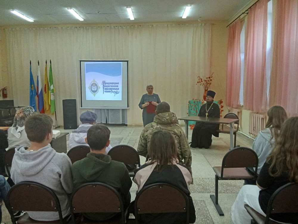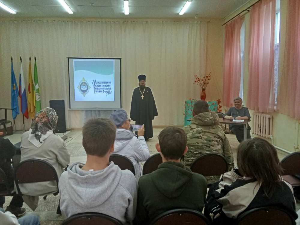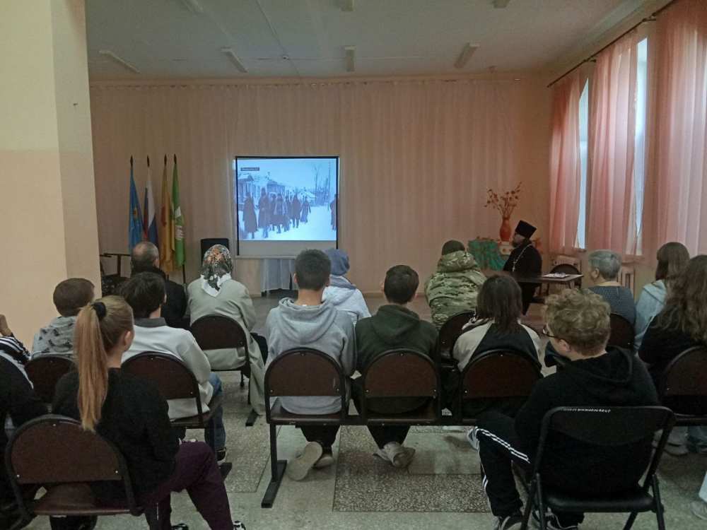 В рамках Епархиального этапа XXXIV Международных Рождественских образовательных чтений состоялась встреча учащихся 8 класса и жителей поселка с настоятелем храма