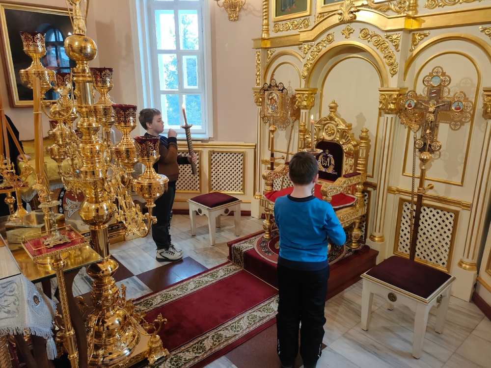 После, для юных алтарников был проведен очередной урок алтарного служения, диакон кафедрального собора Даниил Ермолаев подробно объяснил ребятам как нужно ходить со свечей во время богослужения, а также как правильно вести себя в Алтаре.