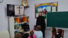 В конце учебного дня отец Даниил провел занятие по Закону Божию, где рассказал о Кресте Господнем, о смысле его почитания, а также о значении жертвы Иисуса Христа.