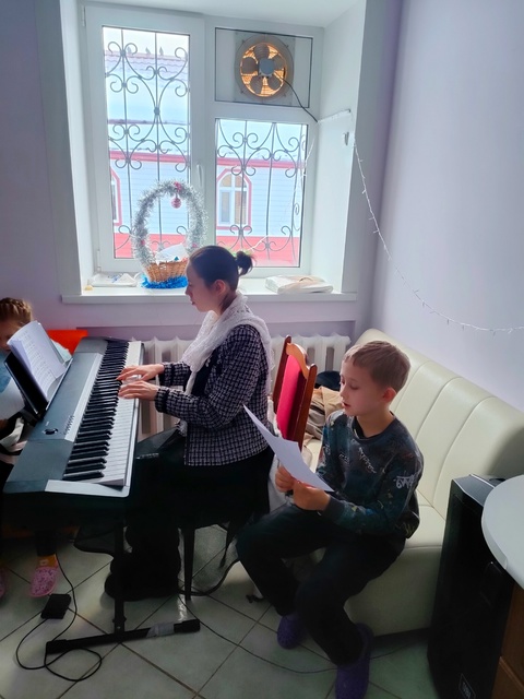 В начале Александра Александровна провела занятие по церковному пению, где ребята учились петь молитву "Царю Небесный".