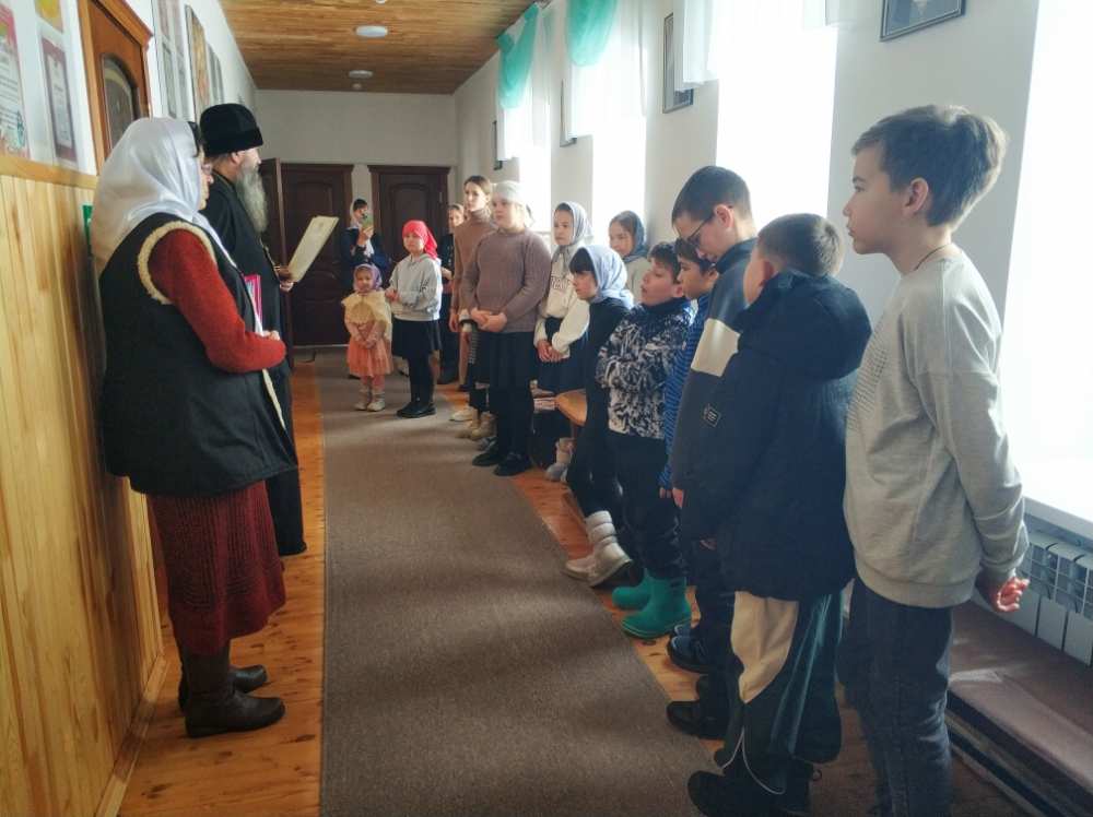 Несмотря  на  метель и заносы, воспитанники  школы  и  родители  приняли  участие  в  мероприятии. Перед  посадкой общая  молитва, затем   все  получили  задания. Участники олимпиады должны были продемонстрировать свои знания Ветхого и Нового Заветов, ответить на вопросы других  разделов и блока по церковнославянскому языку. Настоятель  храма  протоиерей Константин (Фролов)  поприветствовал всех присутствующих  и вручил  победителям грамоты и книги, а  остальные  участники   получили  сладкие  подарки.