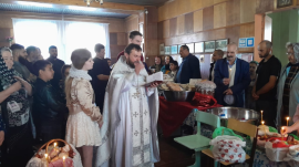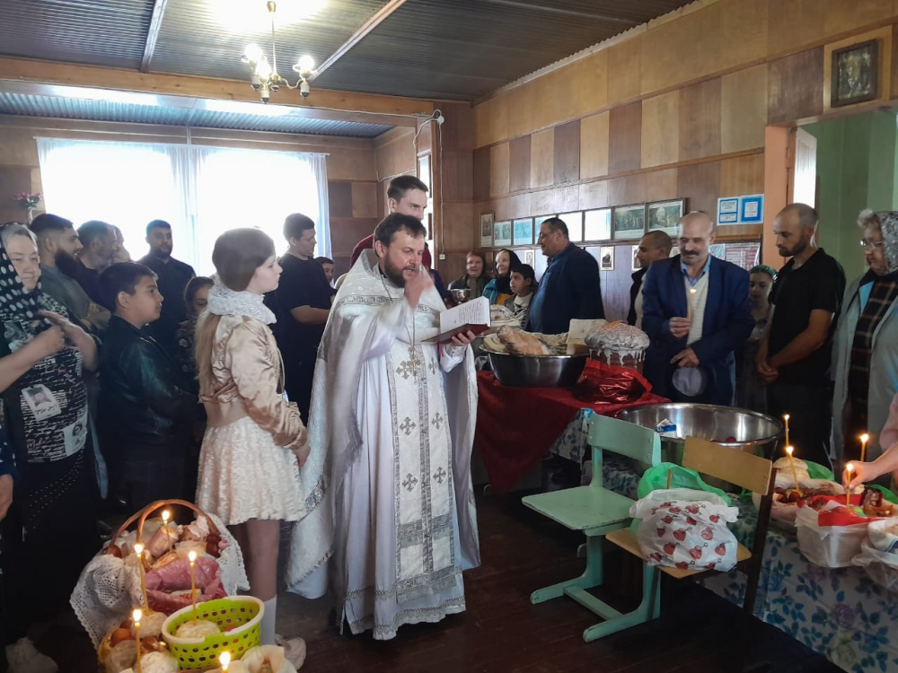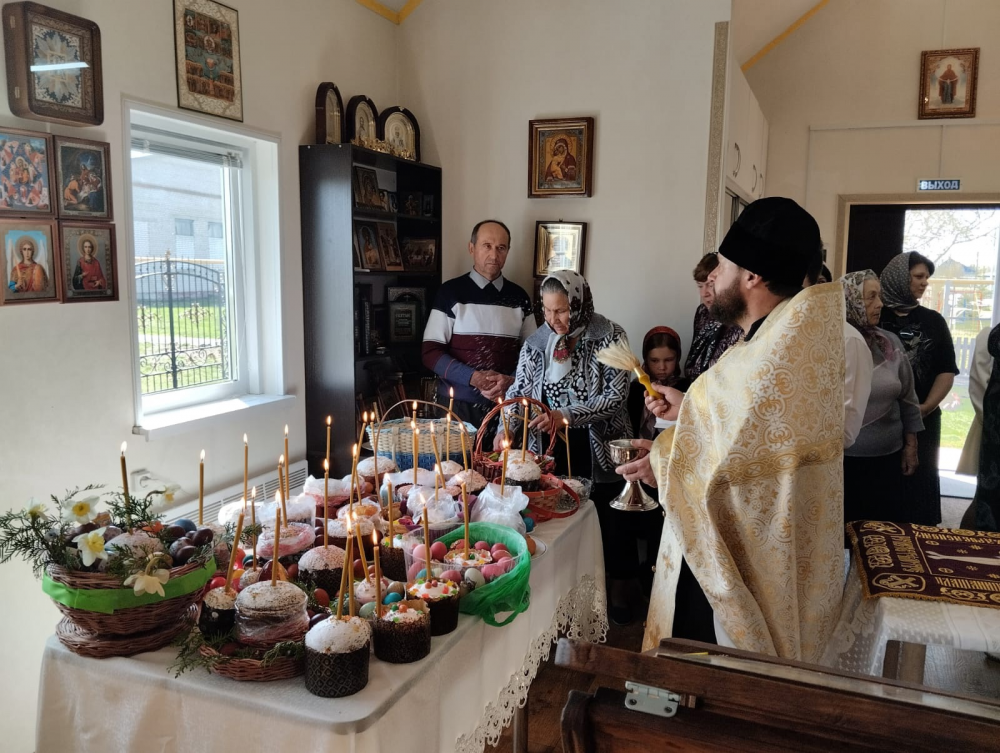 После этого протоиерей Алексий Исаев посетил села Новомалылклинского района. Батюшка провел освящение куличей и яиц, рассказал прихожанам о событиях сСрастной субботы и предстоящего Христова Воскресения.