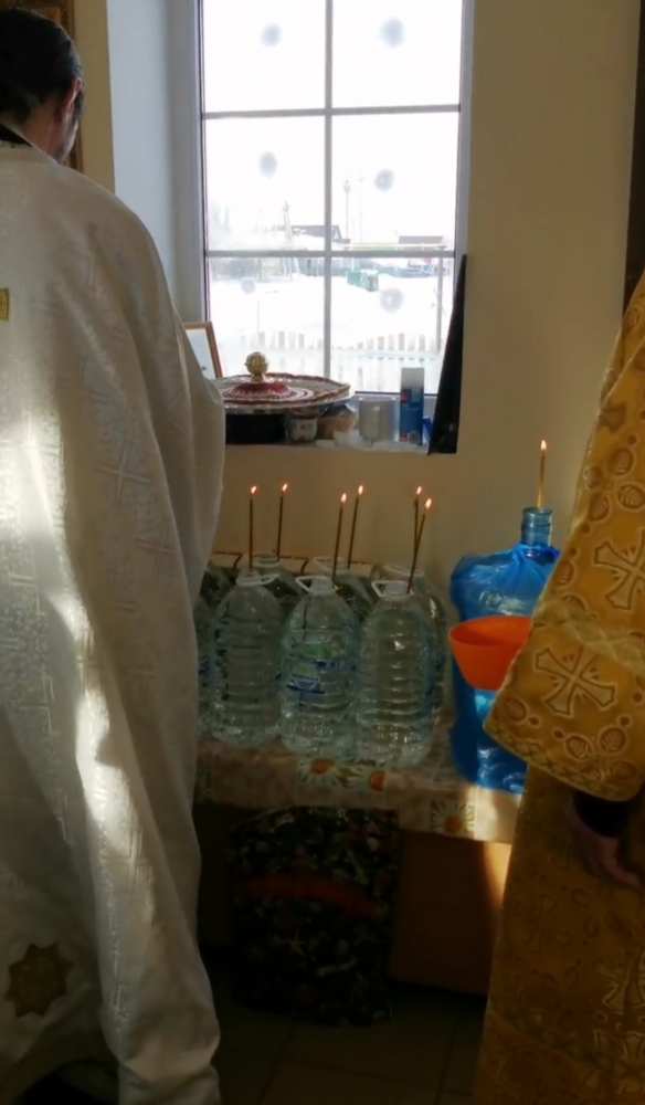 По окончании Литургии священник совершил Великое посвящение воды, поздравил верующих с наступающим праздником Богоявления, рассказал о значении праздника и о праведном отношении к освящённой воде.