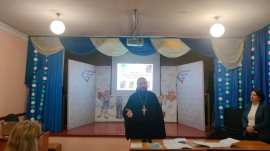 На родительском собрании выступил настоятель храма святой мученицы Татианы пос. Октябрьский иеромонах Иона (Черкасов), который рассказал о ключевой роли Православия в истории России; о содержании учебного предмета «Основы православной культуры»; о том, что родная православная традиция и культура помогает воспитывать в детях нравственные качества и добродетели.