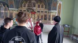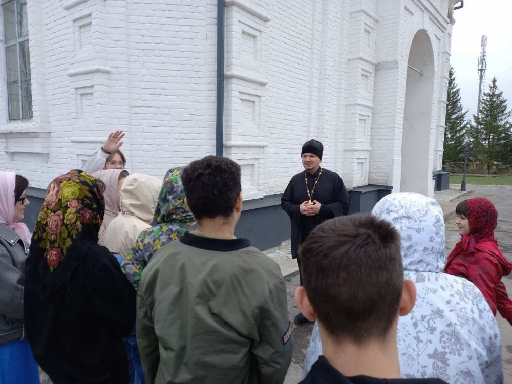 Настоятель храма священник Димитрий (Ипатов) провёл для ребят экскурсию, рассказал о празднике Благовещения Пресвятой Богородицы, а также познакомил с устройством православного храма.