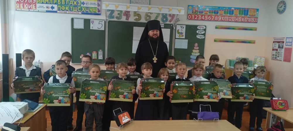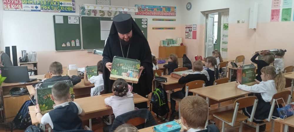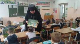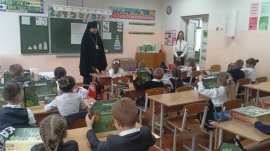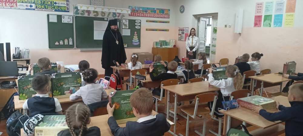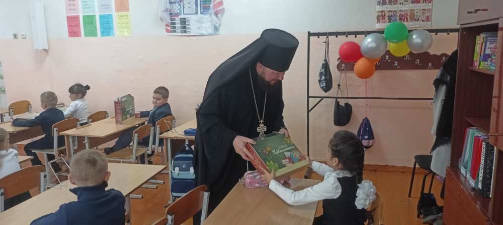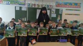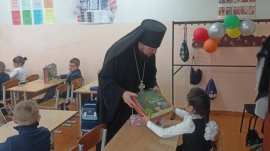 Встреча настоятеля храма св. блж. Матроны Московской с первоклассниками средней школы в п. Красный Гуляй