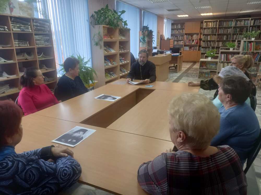 13 октября 2025 года в библиотеке п.Мирный прошла встреча настоятеля храма вмц. Ирины с жителями, посвящённая 25 летию со дня прославления в лике святых преподобноисповедника Гавриила архимандрита Мелекессого.
