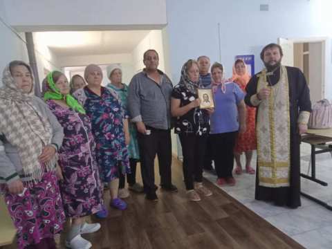 Отец Алексей вновь встретился с пациентами одного из отделений больницы. Батюшка провел молебен для всех присутствующих, пациенты приложились к образу Спасителя и к Кресту.