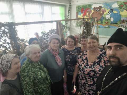 Стороны обсудили формы сотрудничества. Отец Александр освятил маскировочные сети и гуманитарную помощь для отправки на фронт.