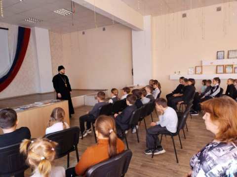17 апреля 2025 года настоятель храма святаго преподобного Иоанна Дамаскина с.Подкуровка иерей Александр Малов провел встречу со школьниками и рассказал им о жизни и служении святителя Тихона, Патриарха Московского и всея России.