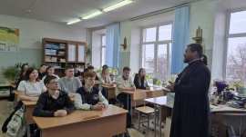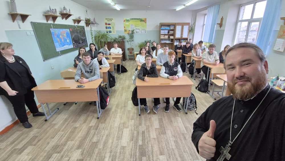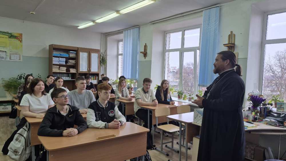 2 апреля 2026 года, настоятель храма Всецарицы г.Димитровграда священник Петр Гурьянов встретился со старшеклассниками средней школы №17 имени генерал-лейтенанта В.М. Баданова города Димитровграда