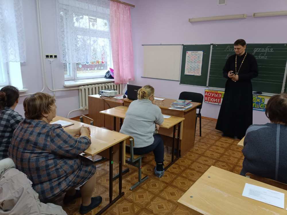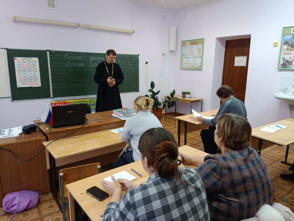 8 декабря 2025 года в СОШ с. Кротково прошла беседа руководителя Молодежного отдела Сенгилеевского благочиния иерея Вячеслава Ковальчука с родителями школьников по вопросу выбора курса "Основы православной культуры".