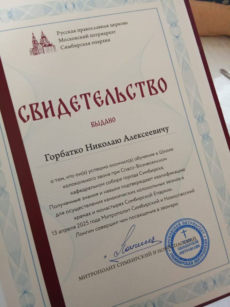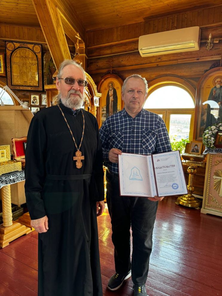 18 апреля 2025 года отец Николай поздравил выпускника школы колокольного звона, прихожанина храма и жителя с.Красный Яр Горбатко Николая Алексеевича.