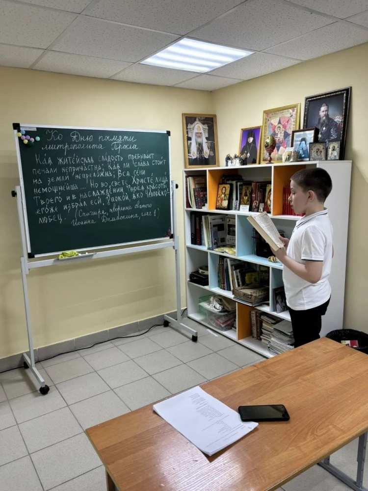 Преподаватели школы рассказали воспитанникам о книге «Пастырь добрый», посвящённой жизненному пути и архипастырскому служению митрополита Прокла. Это издание стало для ребят примером того, как через книгу сохраняется память о подвижниках веры и передаётся духовный опыт. Особое внимание педагоги уделили и личности самого владыки Прокла — его трудам по возрождению церковной жизни в Симбирской епархии, его заботе об этой земле и пастырском служении. Также преподаватели объяснили детям значение родительской субботы: они рассказали о традиции молитвенного поминовения усопших, о том, почему Церковь установила особые дни для общей молитвы о тех, кто отошёл в вечность.