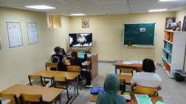 Ребята вместе с преподавателями посмотрели душеполезный фильм к 25-летию канонизации святого Гавриила, предоставленный Покровской епархией, местом, где раньше нес свое служение небесный покровитель нашего города.