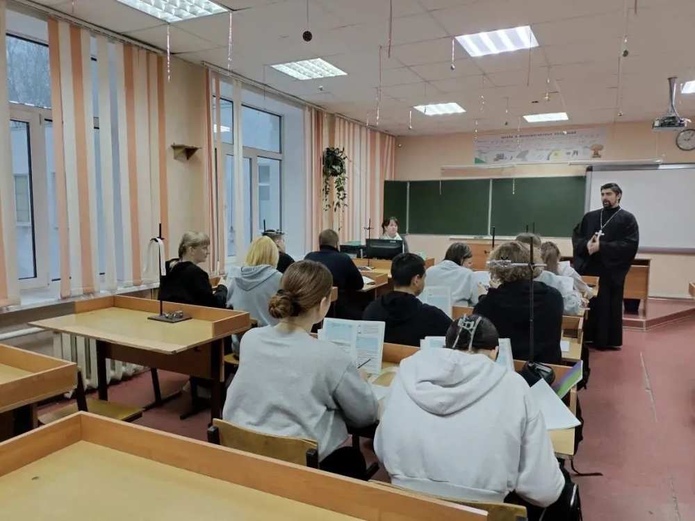 12 декабря 2025 года руководитель Отдела религиозного образования, катехизации и миссионерского служения Мелекесской епархии священник Александр Ижуков провёл занятия с девятиклассниками средней школы №19 г. Димитровграда.