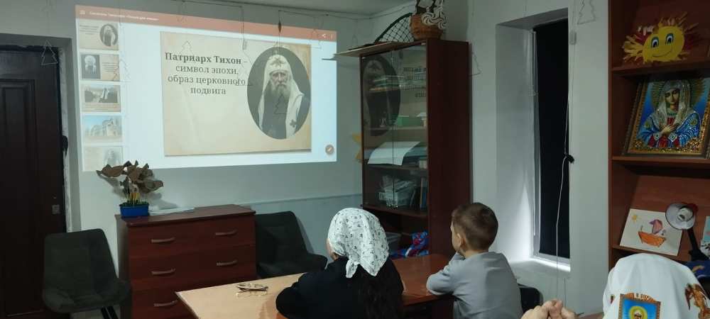 Воспитанники познакомились с жизнью и деятельностью святителя Тихона, с тяжелым периодом лихолетья в условиях захлестнувших Россию революции, Пражданской войны и всеобщей разрухи, выпавшим на периодом его правления..
