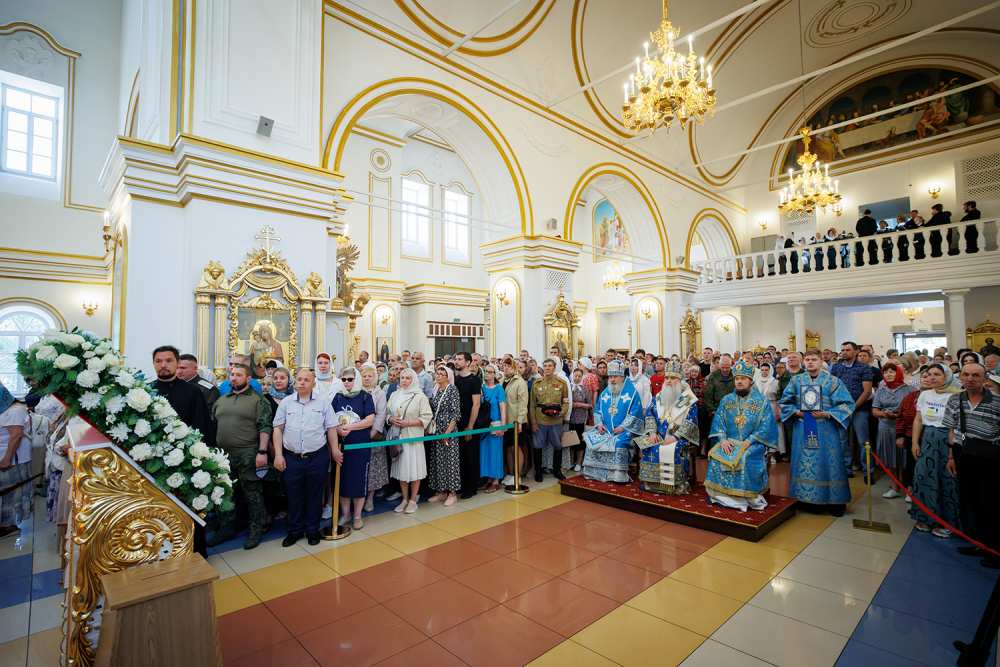 По завершении богослужения было совершено славление перед чудотворным образом, который в эти дни будет пребывать в Спасо-Вознесенском соборе.