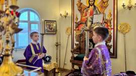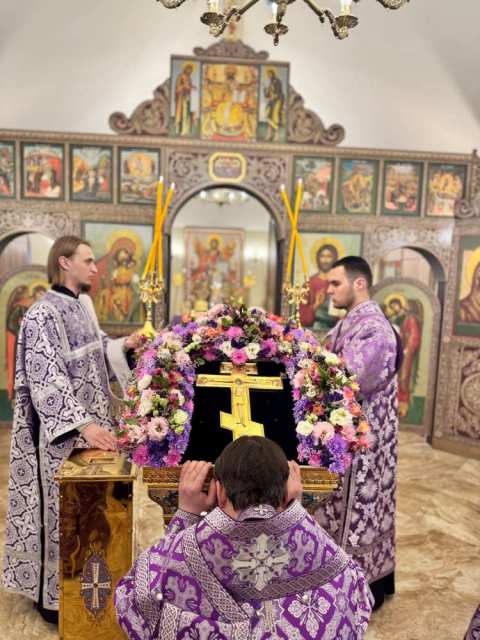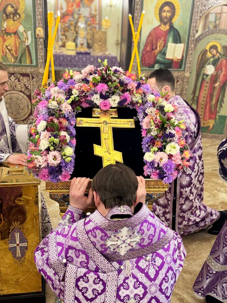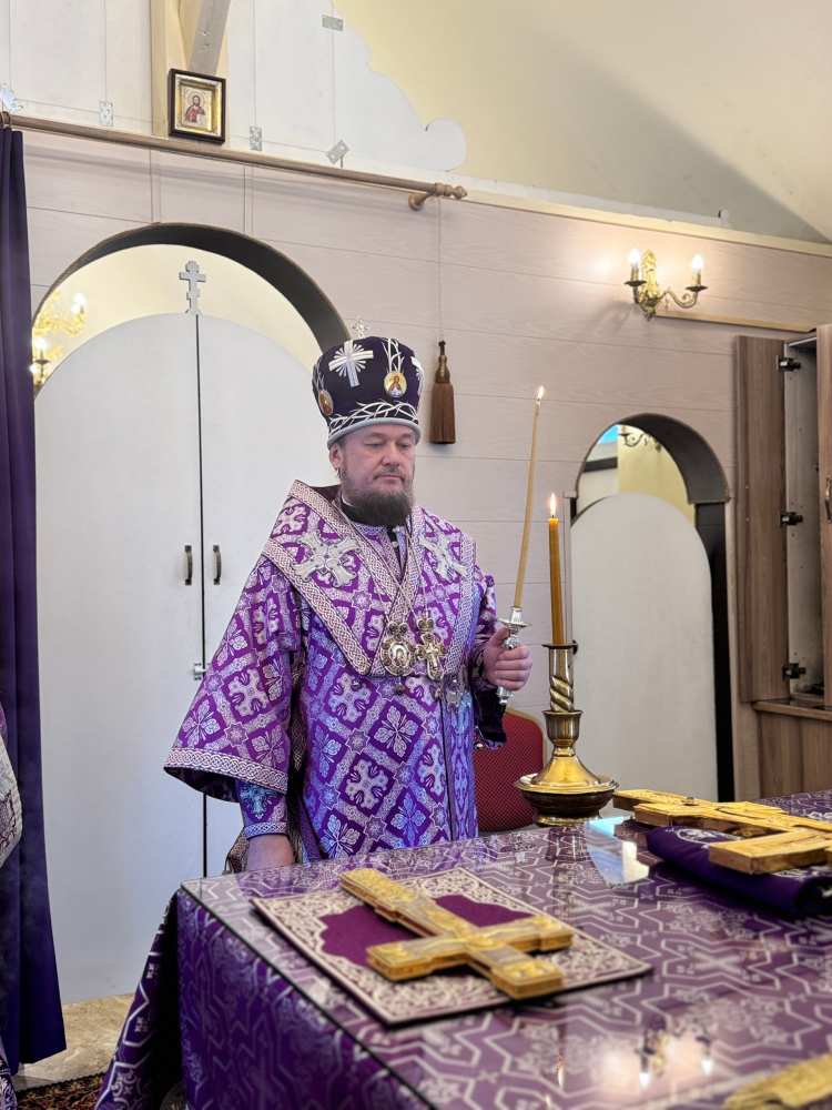 В канун Недели 3-й Великого поста, Крестопоклонной, Преосвященный епископ Диодор по традиции совершил всенощное бдение с чином выноса Честного и Животворящего Креста Господня