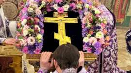 После великого славословия Его Преосвященство совершил чин выноса Креста.