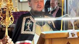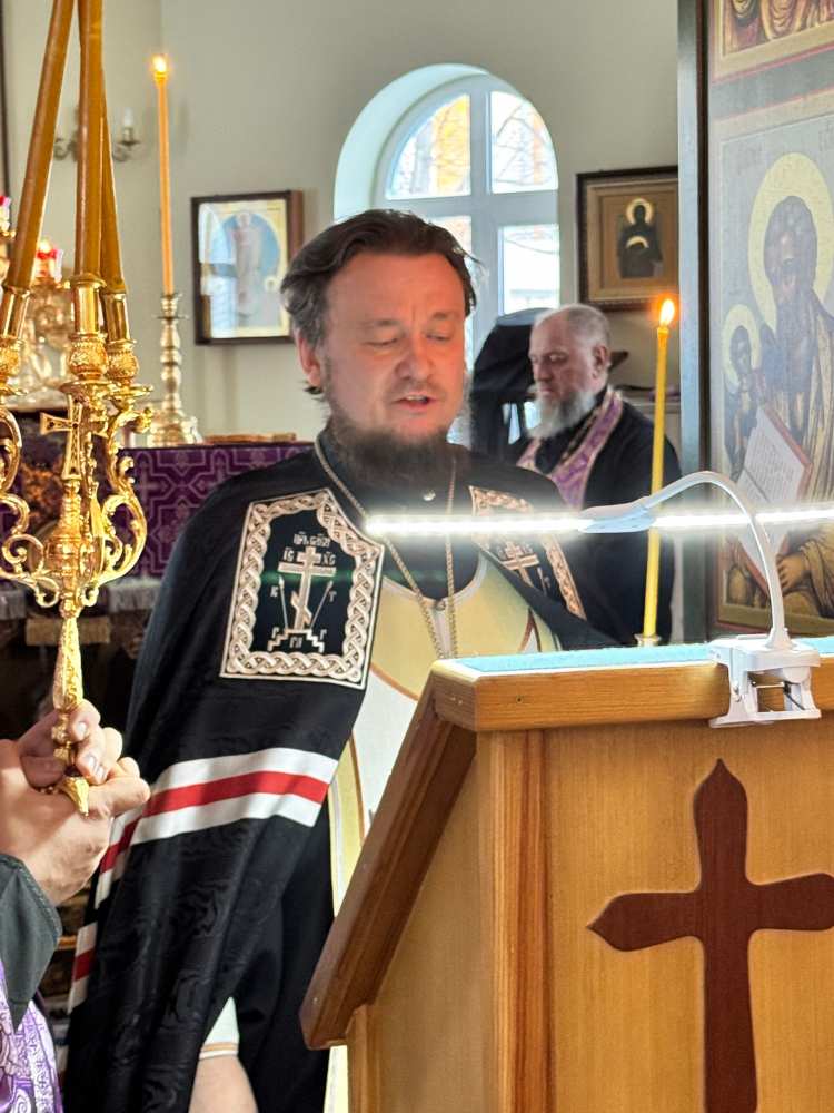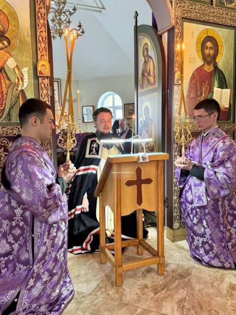 В начале богослужения духовенство переоблачилось в великопостные фиолетовые ризы.