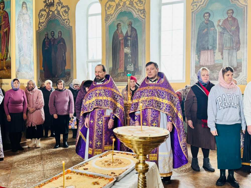 По заамвонной молитве Владыка Диодор возглавил молебное пение великомученику Феодору Тирону и освятил коливо .