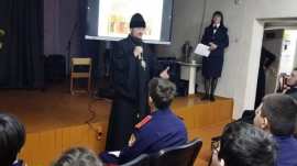 Владыка Диодор рассказал ребятам о жизни и духовных подвигах новомучеников и исповедников Церкви Русской в XX веке пострадавших. Трудном переломном историческом моменте истории нашего Отечества, времени, в котором им пришлось жить.