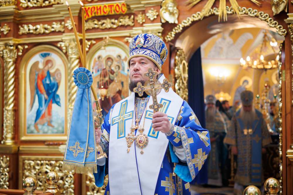 Преосвященный Владыка Диодор поздравил молившихся за праздничным богослужением архипастырей, духовенство и мирян: