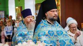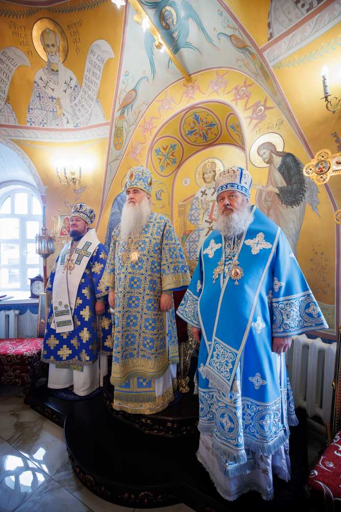 Их Преосвященствам сослужило духовенство митрополии:. секретарь Симбирского епархиального управления иерей Роман Солодко, секретарь Мелекесской епархии иеромонах Прокл (Бойко), секретарь Архиерейского совета Симбирской митрополии протоиерей Илия Кузнецов, священнослужители храмов Симбирской, Барышкинской и Меоекесской епархий