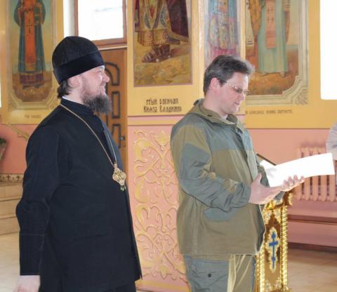 5 апреля 2017 года в Свято-Никольском храме г. Димитровграда Преосвященнейший Диодор, епископ Мелекесский и Чердаклинский встретился с казаками Симбирского окружного казачьего общества Волжского войскового казачьего общества.