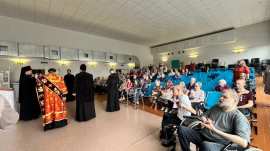 Владыка Диодор благословил всех постояльцев интерната, поздравил с праздником Воскресения Христова, пожелал всем Божьей помощи и вручил Пасхальные подарки.