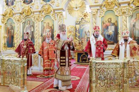 По завершении богослужения было совершено славление святому мученику Лонгину Сотнику и возглашено многолетие митрополиту Симбирскому и Новоспасскому Лонгину по случаю дня тезоименитства.