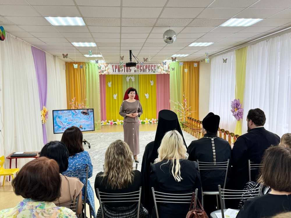Детский сад № 38 «Золотой петушок» поделился опыт работы по духовно – нравственному воспитанию детей дошкольного возраста с внедрением части программы «Социокультурные истоки» в рамках реализации проекта «Наш Добрый мир»; Детский сад № 47 «Веселинка» продемонстрировал "Духовную гостиную, как результат работы с детьми старшего дошкольного возраста по ознакомлению со святыми защитниками земли русской», ЦРР – детский сад № 56 «Сказка» поделились опытом Приобщения детей и родителей к истокам русской народной культуры», ЦРР – детский сад № 57 «Ладушка» - "Привитие духовно-нравственных ценностей детям, через программу «Социокультурные истоки», с вовлечением родителей в образовательный процесс.