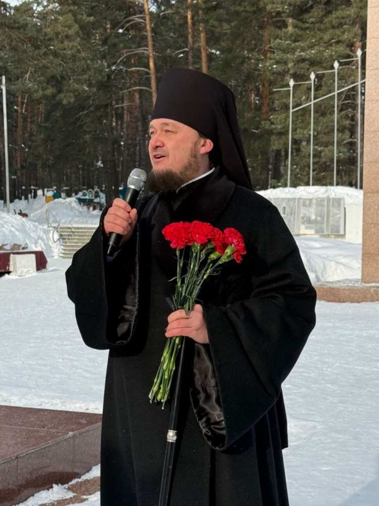 В День защитника Отечества Преосвященный епископ Диодор возложил цветы к Монументу Славы и Вечному огню и поздравил воинов Вооруженных сил РФ