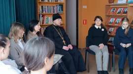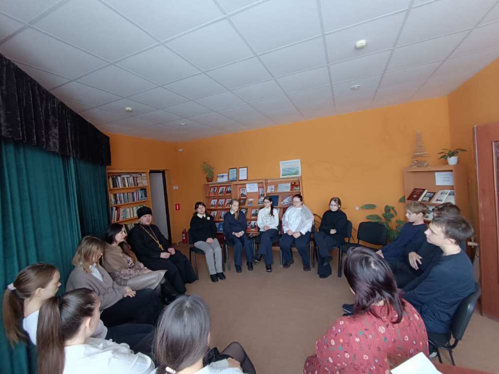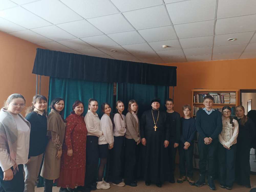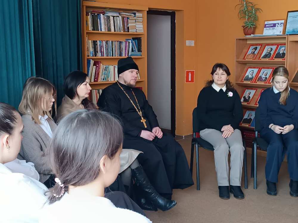 11 февраля 2026 года настоятель храма рп.Иоанна Дамаскина иерей Александр Малов провел беседу со школьниками 9-11 классов местной школы. Встреча была приурочена к дню Православной молодёжи. Темой беседы стали "Семейные ценности".