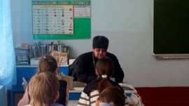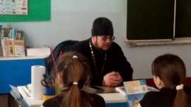 На беседе батюшка рассказал о наступающем празднике Сретение Господне,о его значении для нас и о его главной цели, встречи человеческой души с Богом. А также отец Владимир пообщался с учащимися на тему "Отношения Православной Церкви к спорту".