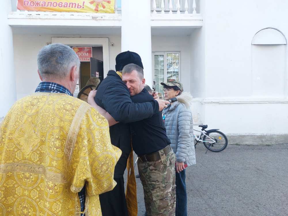 По благословению Преосвященного Диодора епископа Мелекесского и Чердаклинского руководитель Епархиального отдела по взаимодействию с Вооруженными Силами и правоохранительными органами иеромонах Иона (Черкасов) перед отправкой автомашины обратился к присутствующим с благодарностью и напутственным словом, затем, после совместной молитвы, благословил водителей и освятил гуманитарный груз.