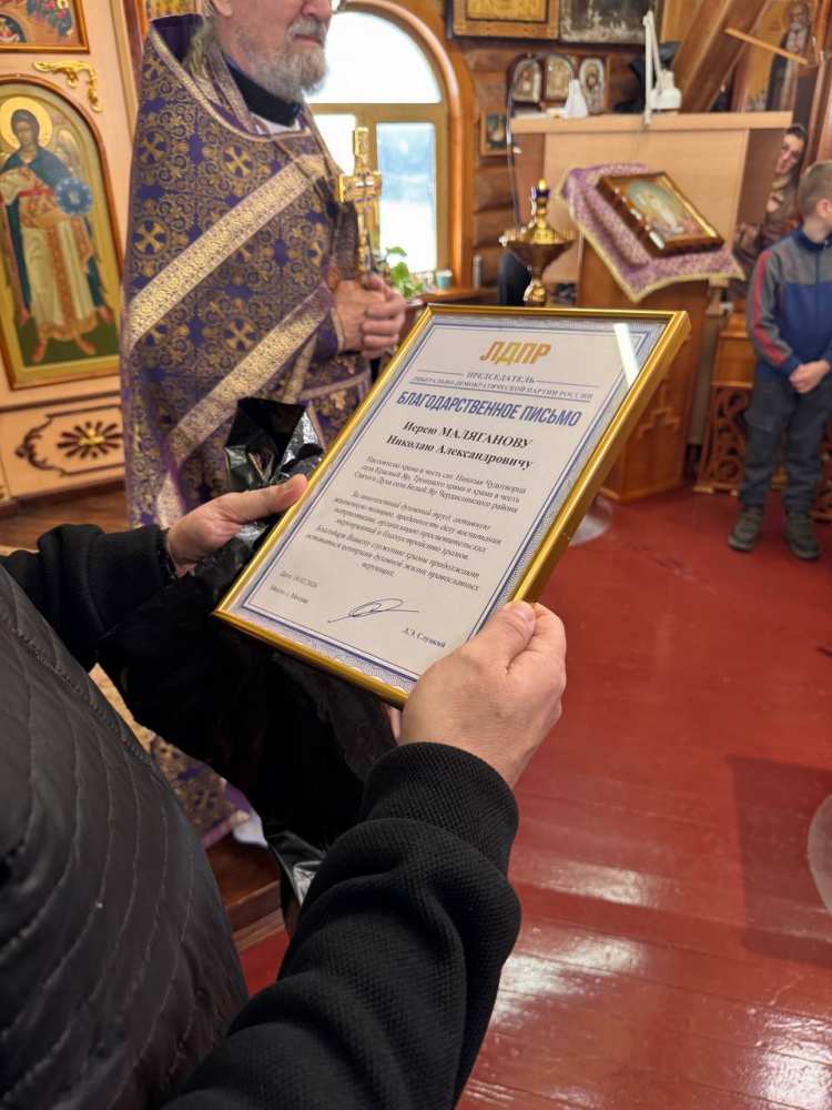 1 марта 2026 года после Божественной Литургии представитель партии ЛДПР вручил Благодарственное письмо и медаль За активное участие в помощи сбора груза воинам на СВО, а также прихожанке храма Ирине Ивановне медаль За активное участие в организации пункта плетения маскировочных сетей.