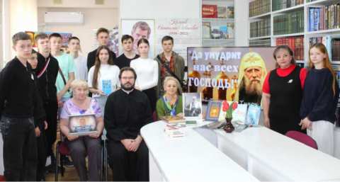 На встрече присутствовал настоятель храма Покрова Пресвятой Богородицы протоиерей Олег Беляев. В своей речи он рассказал о значимом духовном пути Святителя Тихона, который стал первым Патриархом после церковной реформы Петра I, и его служение пришлось на один из самых трагических периодов истории страны. Отец Олег заострил внимание на том, что почитание святителя Тихона это не только дань памяти великому пастырю, но и важное напоминание о силе духа и веры, свидетельство безграничного служения своему Отечеству. С большим интересом гости встречи услышали рассказ об одном из этапов служения Святителя Тихона – миссии в Америке. Отец Олег отметил, что такие встречи знакомят молодёжь с жизнью замечательных людей России, воспитывают национальную гордость и патриотизм.