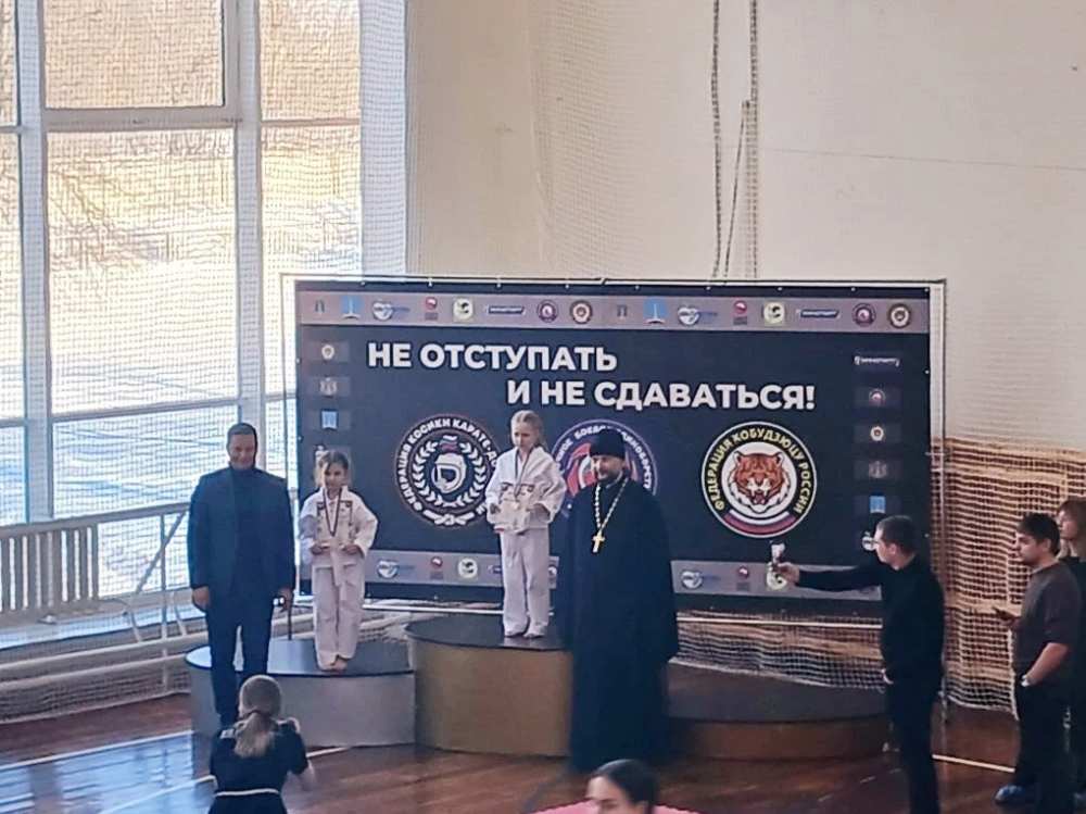 Священник пожелал всем спортсменам Божией помощи, заслуженных побед, согласия, взаимного уважения друг к другу и поздравил с наступающим праздником Днем защитника Отечества!