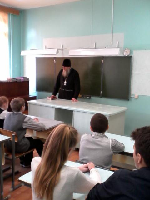 Отец Александр рассказал школьникам о духовных опасностях юношеского возраста и дал напутственные советы молодому поколению.